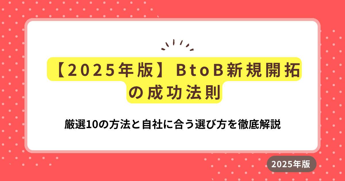 本記事では、BtoBの新規開拓における10の主要な方法と、自社に合った手法の選び方、そして成功のための共通原則を網羅的に解説しました。